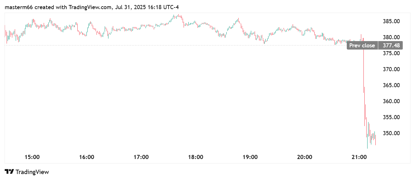 Despite the bullish stance on Bitcoin, Coinbase shares rose following the letter’s launch. COIN made slight positive factors of $0.28 within the final 24 hours to commerce at $377.76 in response to TradingView information.
